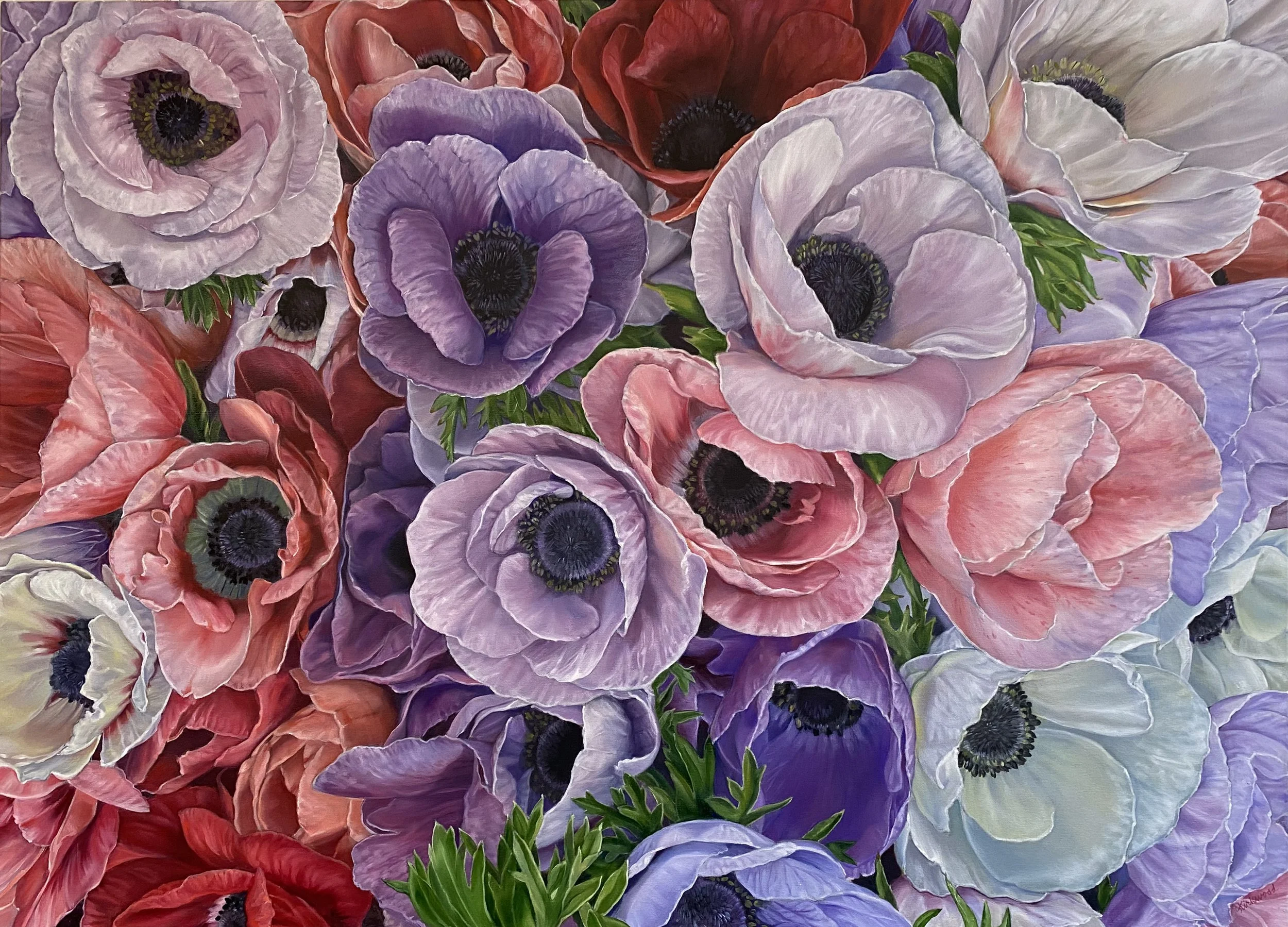 “Persistently Poppies”, oil on canvas, 36” x 52” SOLD